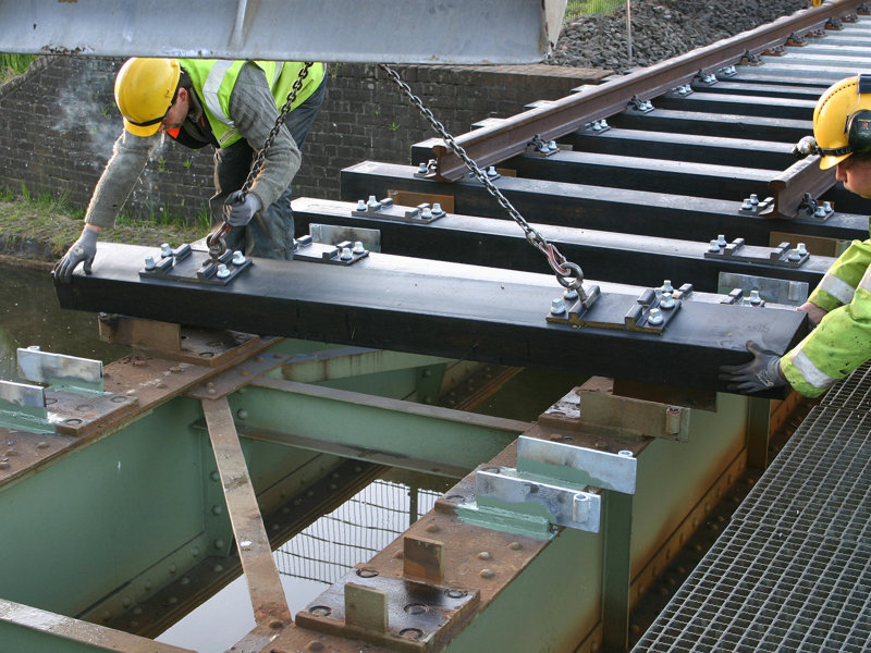 KLP® Bridge Transoms install using standard railway equipment and procedures, making the transition from traditional materials straightforward. Our transoms are compatible with all major fastening systems and can be pre-drilled for faster on-site installation. The ability to mill height adjustments on-location means no factory pre-casting delays – simply adjust to match your specific bridge geometry for perfect track alignment.